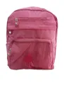 Mochila rosa compacta e resistente, perfeita para a rotina escolar e passeios. Possui compartimento principal amplo para cadernos e materiais, bolso frontal com zíper para itens menores e zíper adicional na parte externa para organização rápida.